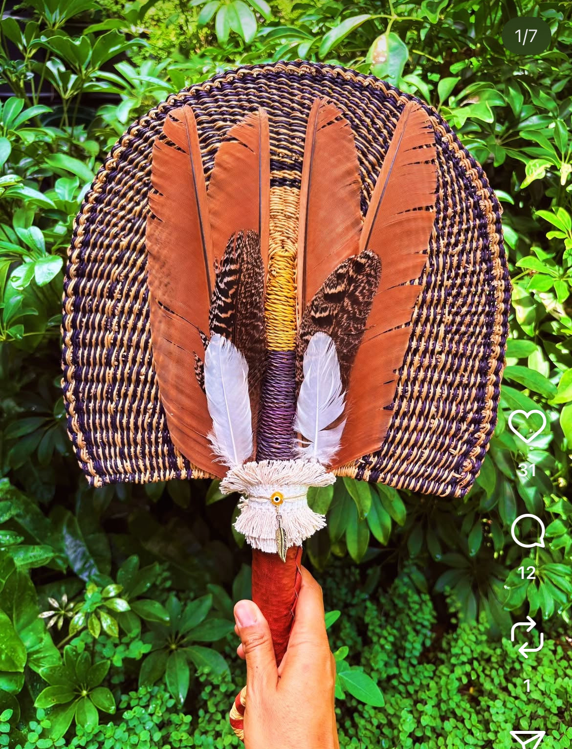Fabiola adorned each fan with her feather magic, awakening them as spiritual companions and ceremonial tools. Their vibrant hues carry the frequency of joy, creativity, and protection.